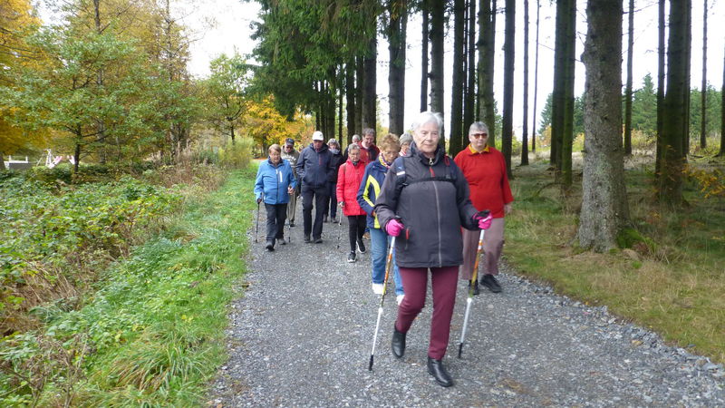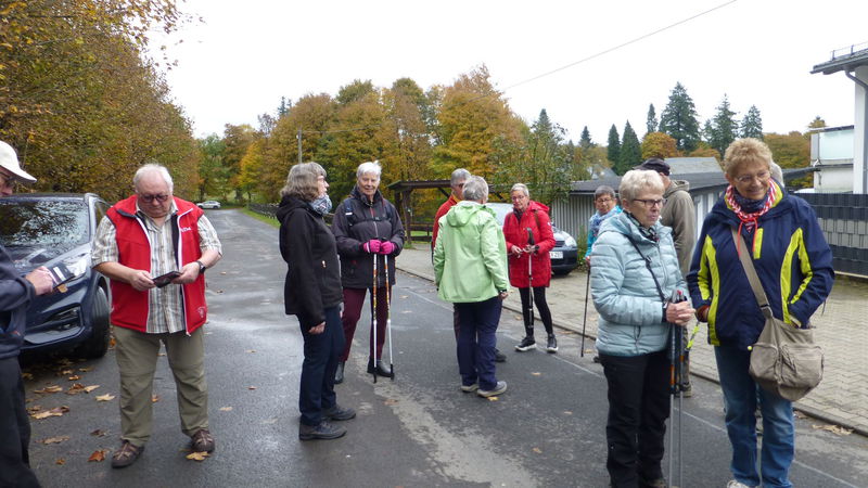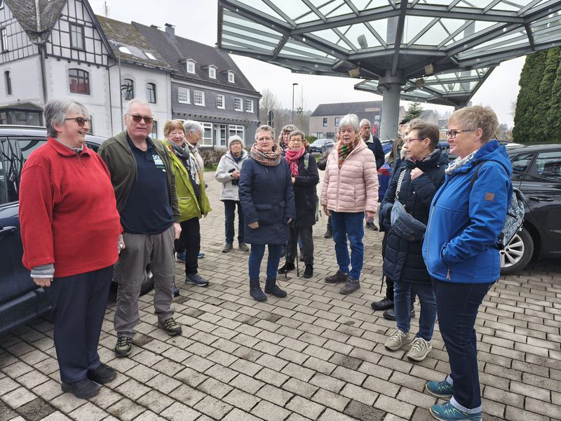 Los ging es pünktlich um 13 Uhr mit 8 Teilnehmern ab unserem Treffpunkt bei den Erndtebrücker Schirmen. Unterwegs wurde in Berleburg unser Wanderfreund Egon abgeholt und am Parkplatz Winterbach oberhalb von Wemlighausen warteten noch die beiden Oberhundemer. Die etwa 2 Kilometer lange Wanderstrecke führte dann entlang dem Kleinen Rüsselsbach an der schon ziemlich grünen Goldeiche (Bild 1 und 2) und der Ruine Rüsselsbach (Bild 3 und 4) stetig bergauf. Für alle neu war die Information, dass die Goldeiche in 1843 als Geschenk vom Belgischen Königshaus als weltweit einzige Mutation an ihren jetzigen Standort gepflanzt wurde und sämtliche Versuche, diese in ihren Merkmalen zu vervielfältigen, aus noch unbekannten Gründen scheiterten.
